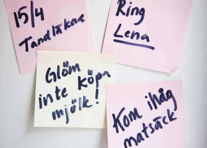 Tricket är förstås att ta tag i ett papper på en gång när man ser det. Med både kalender, att-göra-lista och kamera i mobilen blir det snart en vana.