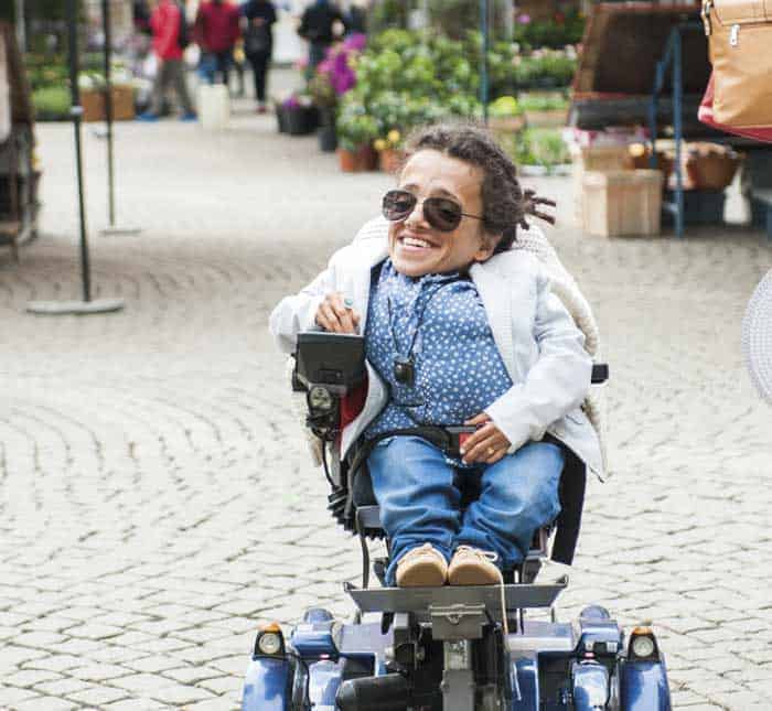 Lever med: Benskörhet, permobil och assistans.